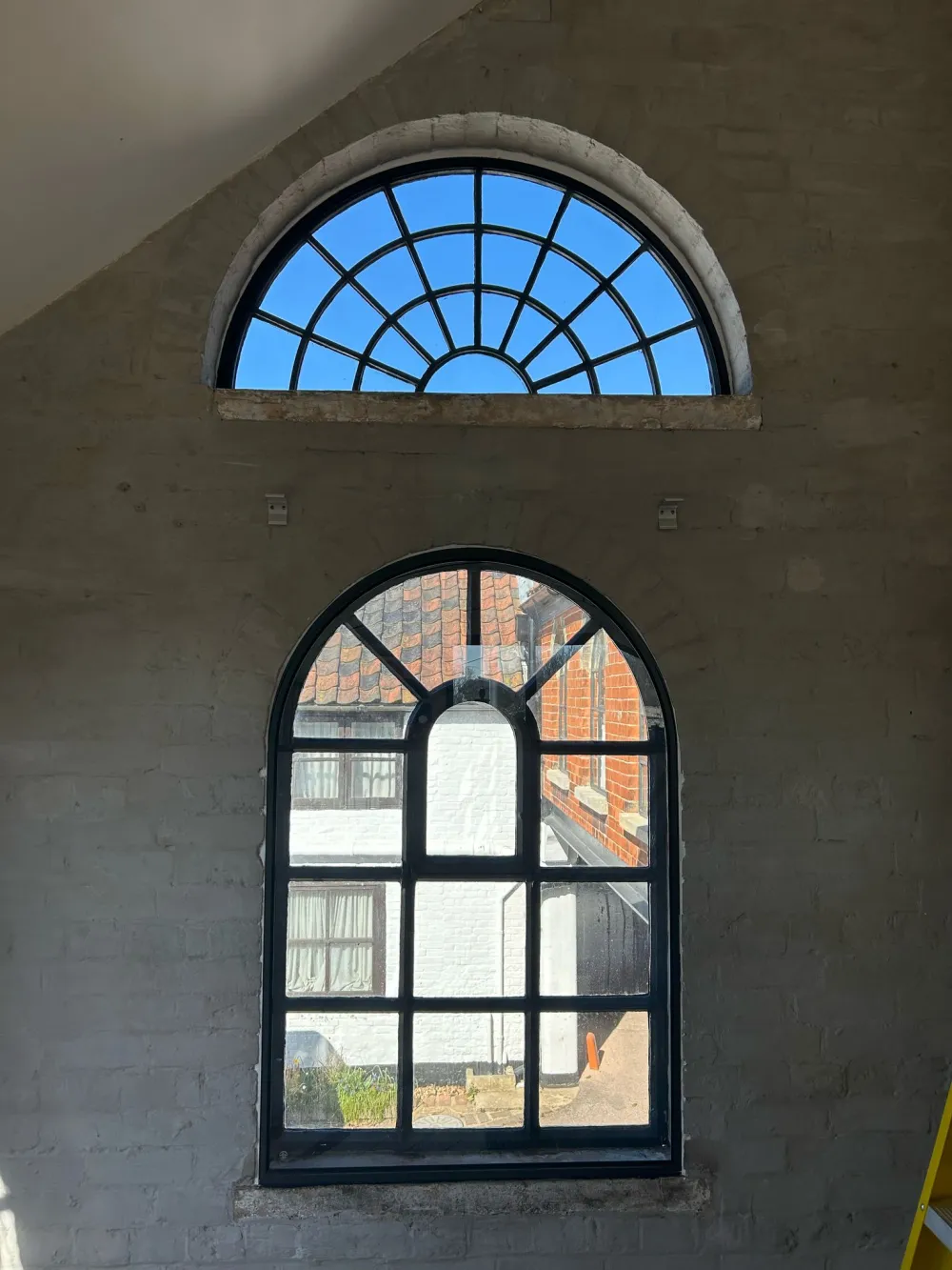 a mixture of vertical sliding sash units and specialist-shaped slimline units